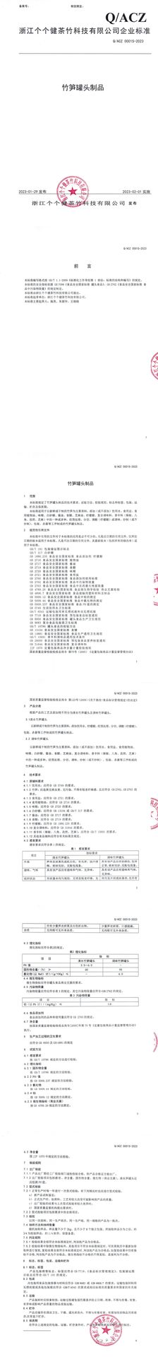 • 竹筍罐頭制品企業標準
